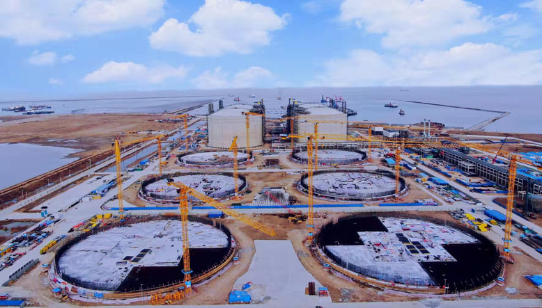 中国海油盐城“绿能港”暨江苏滨海液化天然气接收站项目是我国在建规模最大的液化天然气储备基地,目前项目一期施工进度已完成62.38%。中国海油盐城“绿能港”项目总经理李峰表示,中国海油在超大型液化天然气储罐自主设计建造领域已居世界领先水平。“绿能港”具有液化天然气接收、储存、外输功能,配套冷能利用、燃气发电、燃气制氢等多功能于一体,是综合性绿色清洁能源供应场站和重要枢纽,对于加快长江经济带产业转型、助力我国实现“碳达峰、碳中和”具有重要意义。